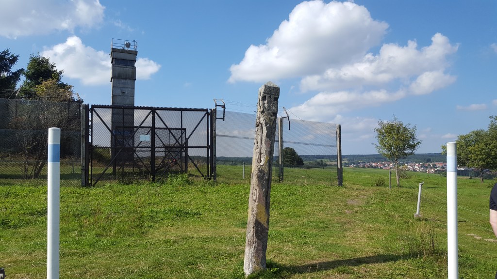 ein paar hundert meter hinter dem parkplatz findet sich eine kleine grenzgedenkstätte mit einem wachtturm und einem stück grenzzaun. immer wieder unvorstellbar, dass das lange zeit unsere realität war. andreas erinnert sich, dass er als bub mit seinem opa otto von hofgeismar aus zu einem turm gefahren ist, von dem aus man in die ddr „gucken“ konnte. wo genau das war, weiss er natürlich nicht mehr.
